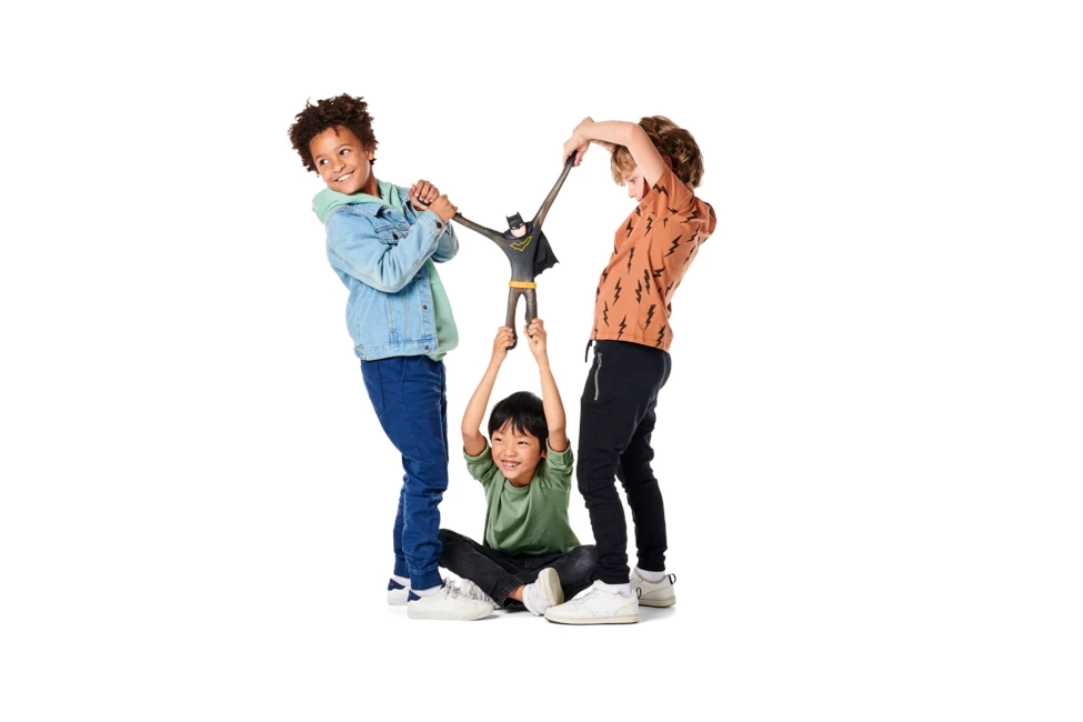 DC Superheroes und die Heroes of Goo Jit Zu haben ihre Kräfte vereint, um dir die ultimative Aufstellung der dehnbarsten, klebrigsten und matschigsten Superhelden aller Zeiten zu präsentieren! Supagoo Batman ist riesige 8" groß und hat eine einzigartige Glibberfüllung. Der dehnbare Körper von Supagoo Batman ist groß und langlebig und kann bis zum 3-fachen seiner Größe gedehnt werden! Alter 4+
