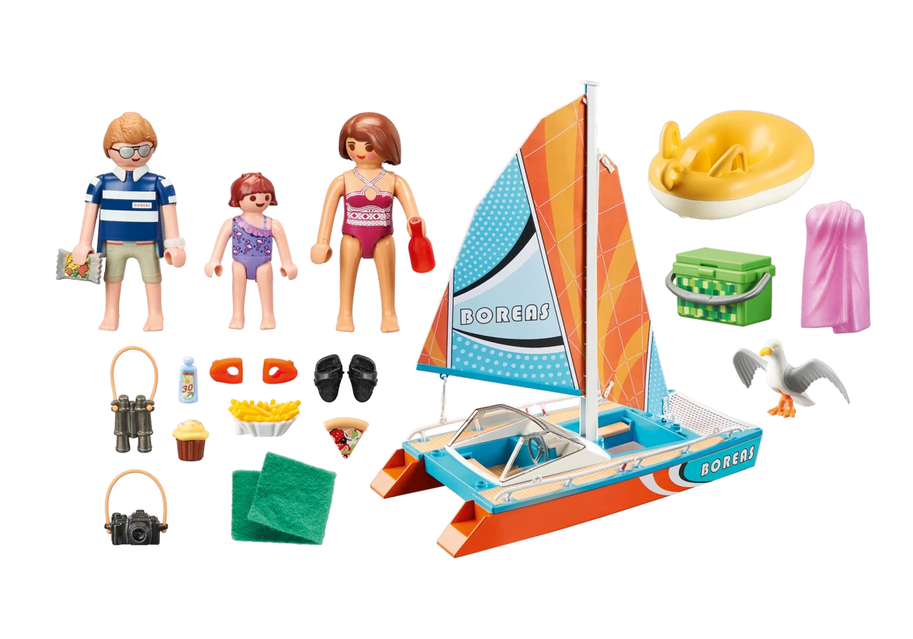 Zubehör: 1 Katamaran, 1 Schwimmreifen, 1 Fernglas, 1 Fotokamera, 1 Tischdecke, 1 Kühltasche, 1 Muffin, 1 Flasche, 1 Pommesportion, 1 Pizzastück, 1 Sonnencreme, 1 Eispackung