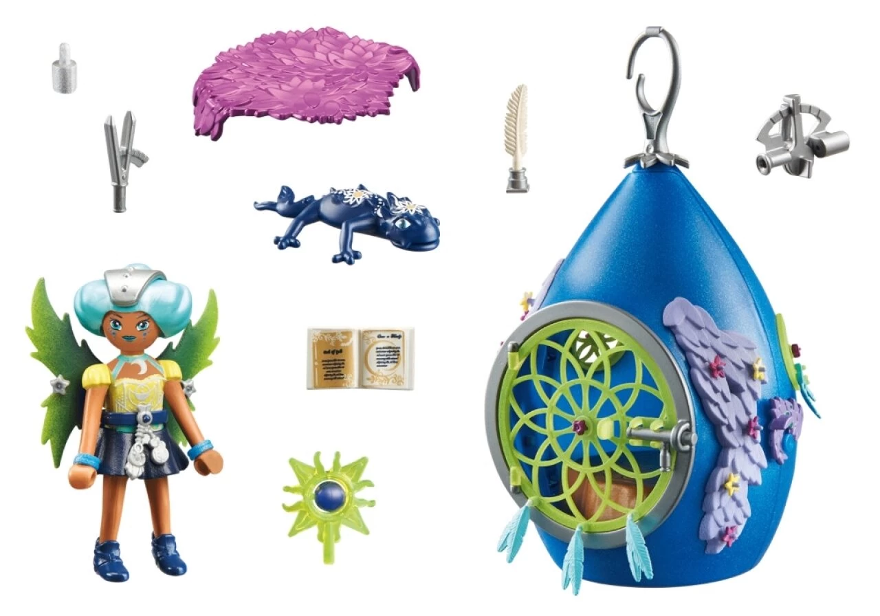 - Das 54-teilige Feenspielzeugset enthält eine Moon Fairy, ein Seelentier Salamander sowie ein Tropfenhäuschen mit Geheimfach und Haken zum Aufhängen sowie viele weitere zauberhafte Extras. Die beiliegenden Sticker in Stern- und Mondform verschönern das Zuhause der Moon Fairy.