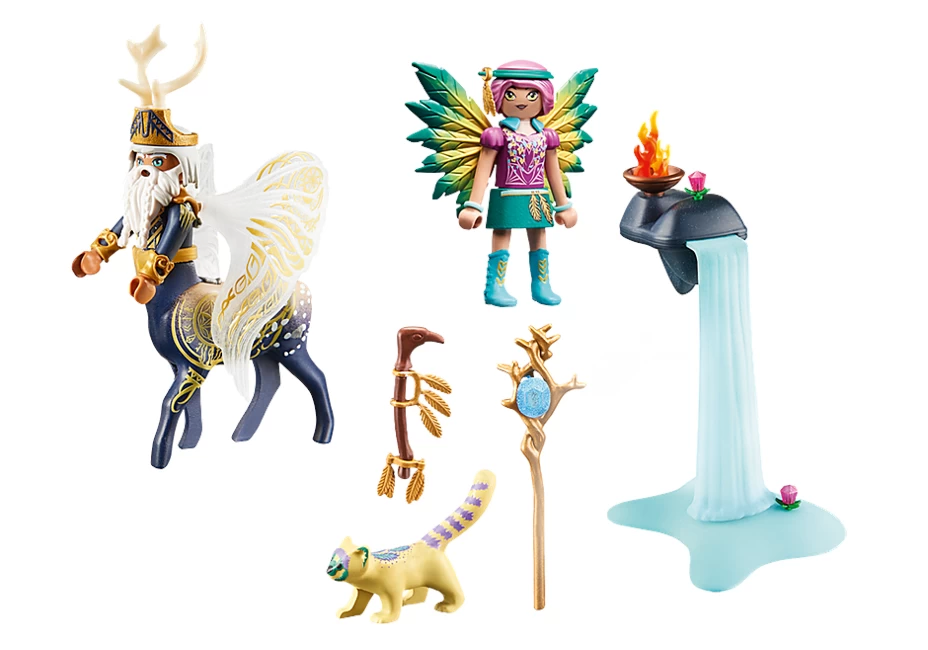 Abjatus ist ein stolzer und weiser Feenmann, der sich mit seinem Seelentier zu einer Zeremonie zusammengeschlossen hat. Seine Flügel leuchten im Dunkeln. Nach ihrer Frühlingszeremonie ist Hildi keine junge Fee mehr, sondern eine Ritterfee, die endlich ihr Seelentier gefunden hat: einen gelben Panda. Ein gefährlicher Nebel legt sich über Ayuma und sorgt für große Verwirrung im Feenreich. Auch die neue Ritterfee Hildi und der mächtige Feenmann Abjatus wollen helfen, den Nebel zu vertreiben und ihn aus Ayuma zu vertreiben. Zum Glück hat Hildi ihr Seelentier, einen gelben Panda, an ihrer Seite. Um ihren Plan zu besprechen, treffen sich Abjatus und Hildi am schwimmenden Wasserfall. Sicherlich fällt den beiden etwas ein, um dem Nebel ein Ende zu bereiten. Mit bezaubernden Charakteren, magischen Tieren und tollen Effekten laden die PLAYMOBIL Ayuma Spielsets zu kreativen Rollenspiel-Abenteuern ein. Fantastischer Feenspaß für Kinder ab 7 Jahren. Spezifikationen: Das 32-teilige Feen-Spielzeugset besteht aus zwei PLAYMOBIL-Feenfiguren, einem Seelentier Panda, einem Wasserfall mit schwimmendem Stein, Kristallzepter, Feuerschale, Kristallkugel und vielen weiteren zauberhaften Extras. Die Flügel des Feenmenschen Abjatus leuchten im Dunkeln. Entdecken Sie das neue Aufbauerlebnis: Dank nummerierter Tüten beginnt der Spaß schon beim Auspacken!