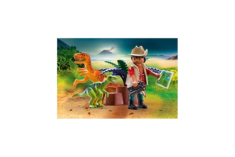 | Verpackungsinhalt | Figures: 1 explorer; Animals: 2 velociraptors; Accessories: 1 dino explorer carry case, 3 bones, 1 shell, 1 ride, 1 box with lid, 1 binoculars, 1 map |