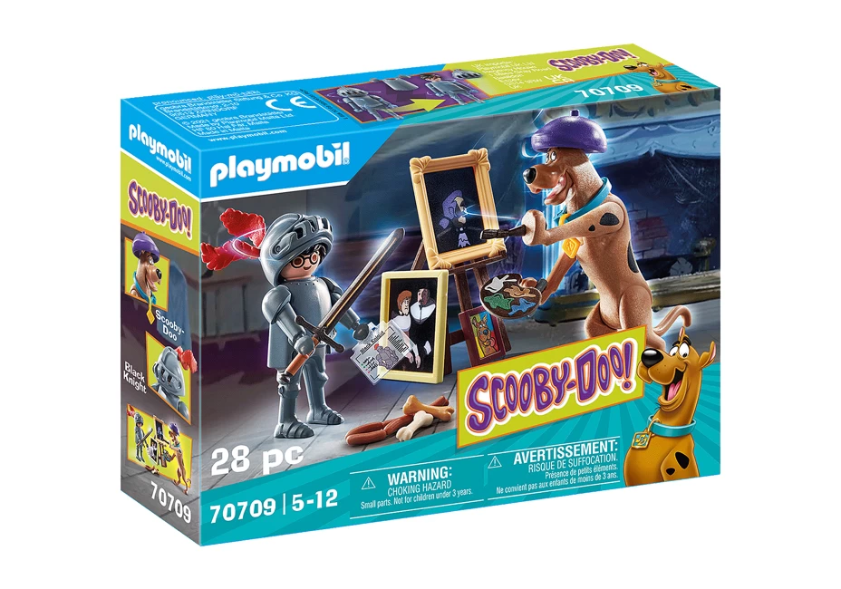 With Scooby, easel and various paintings. You can take the mask off the ghost. Scooby as a painter, which you can collect!At full moon, the incredible SCOOBY-DOO! Adventure about the Black Knight begins. As with magic, the black knight comes to life and haunts everyone in his armor. Scooby-Doo ™ is looking for clues in the paintings that can help capture the villain. One can take the mask of the figure and reveal the true identity of the mysterious black knight. The ghost card contains more information about the black knight. The contents of the ghost cards can be read together with the card reader that comes with the SCOOBY-DOO play sets! Mystery Machine ™ or SCOOBY-DOO! Adventures in the haunted house ™ (70286, 70361 – each set sold separately). The set includes Scooby-Doo, the black knight, a ghost card, the knight’s ghost armor and painting accessories.Playmobil ist klassisches Spielzeug in fantastischer Qualität aus Deutschland.