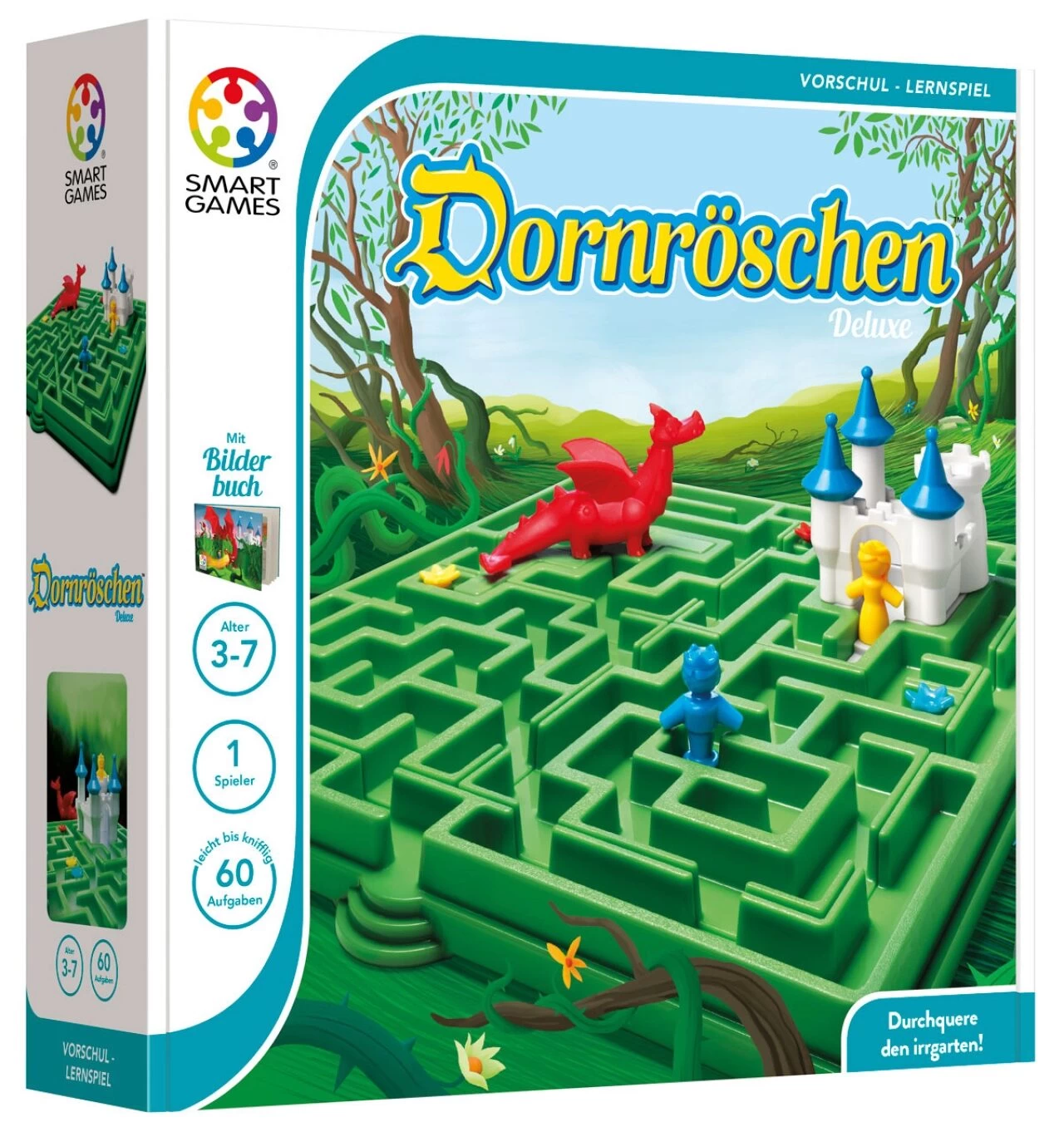 Dieses Märchen-Spiel bietet 60 spannende Aufgaben (je 30 mit und ohne Drachen). Außerdem beigefügt: ein Bilder-Märchenbuch, das eine moderne Illustration des Märchens darstellt.