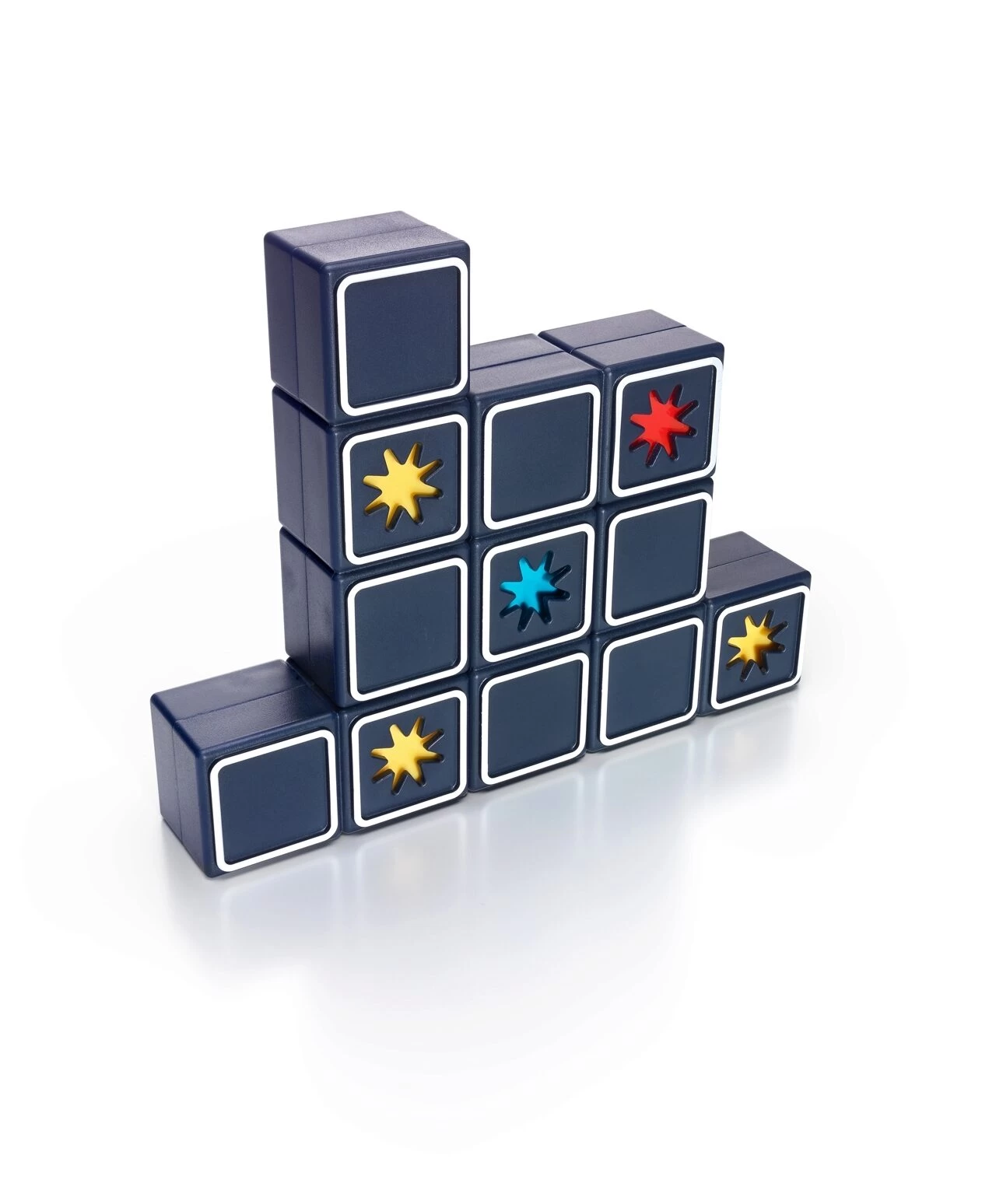 Bringt die Sterne zum Leuchten! In diesem Knobelspiel baut Ihr aus Würfeln verschiedene Konstruktionen nach, in denen Sterne leuchten. Schon der erste Teil ist knifflig, denn die wenigen Formen müssen so kombiniert werden, dass sie den Darstellungen der Aufgaben entsprechen. Doch die zweite Komponente hat es in sich: Die Sterne wechseln je nach Orientierung der Bauteile ihre Farbe! Und die Spieler müssen die Farben an den korrekten Stellen in den vorgegebenen Farben erstrahlen lassen. Eine echte Sternstunde für alle Knobelfreunde!