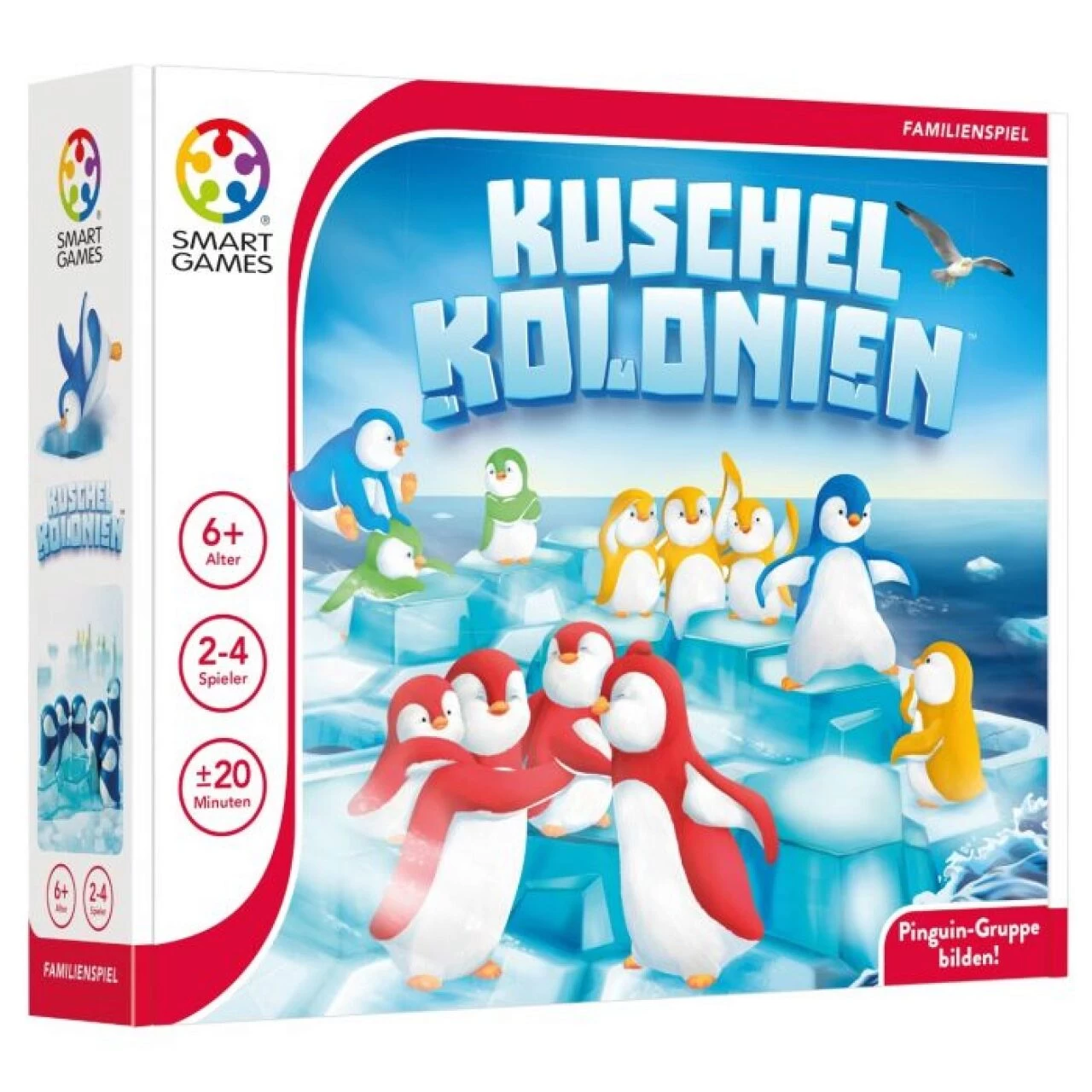 Die Pinguine sind auf dem Eis verstreut und so langsam wird es kalt! Bring deine Pinguine zusammen… und hindere die Mitspielenden daran, das Gleiche zu tun! Der erste Mitspieler, der seine Pinguinfamilie zusammenbringt, gewinnt das Spiel.